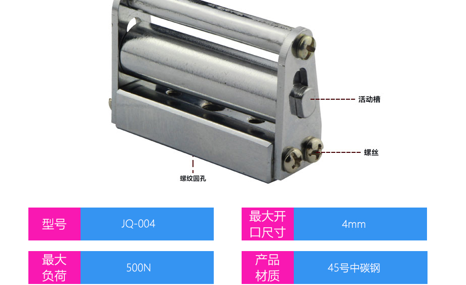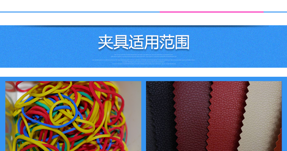 產品型號:JQ-004 品牌:劍 喬 用途:布料夾具適用范圍:布料、紙類、毛料、纖維、皮革、橡膠等材料的拉力、破壞力、延伸力測試。